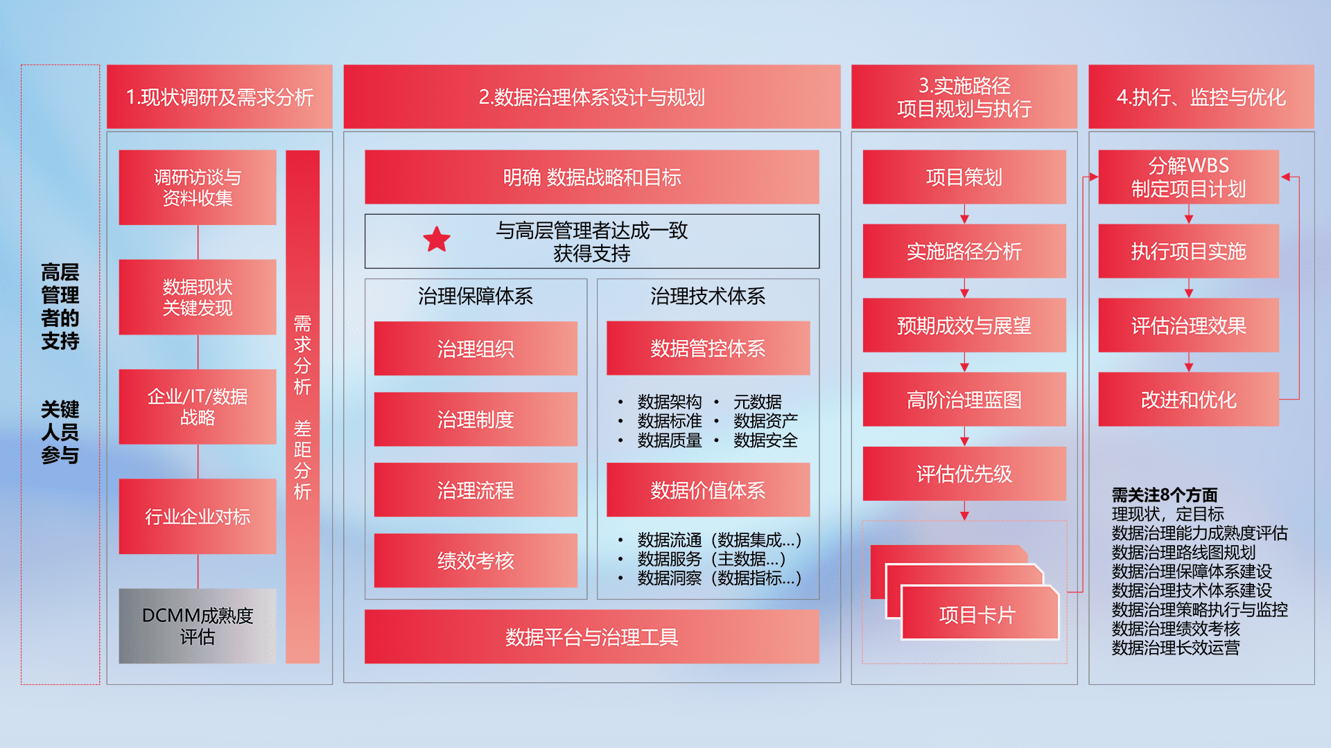 以高阶专业视角定制解决方案,,结合行业最佳实践,,覆盖数据全生命周期管理,,确保策略落地执行,,,,助力企业构建高效、、、可持续的数据管理体系,,,,推动数字化转型。。